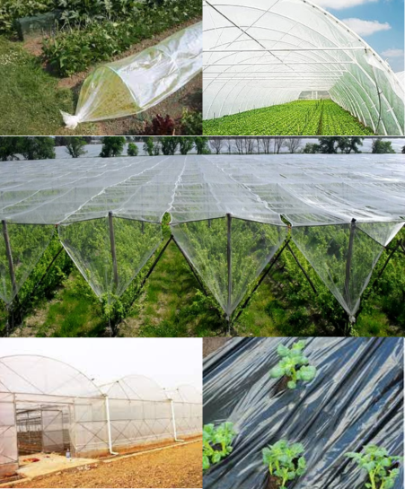 Des filets en polyéthylène extrudé sont utilisés pour ombrager et protéger les récoltes contre les oiseaux, les rongeurs et les cerfs. Une autre application importante concerne la consolidation du sol, où les filets maintiennent le sol en place (en particulier dans les talus en pente) jusqu’à ce que des buissons ou des arbres aient développé des racines suffisantes pour le stabiliser. Des filets plus gros sont souvent utilisés pour faire des clôtures légères pour l’élevage. Les monofilaments extrudés en polyéthylène et en polypropylène sont largement utilisés pour fabriquer des cordes et des ficelles, y compris des ficelles à ballots pour les ballots de fourrage et autres produits agricoles.